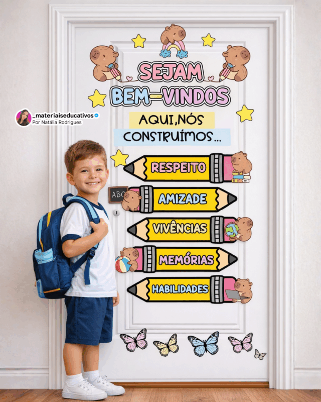 Painel Porta – Volta às Aulas | Tema Capivara Fofinha 🦫✨
